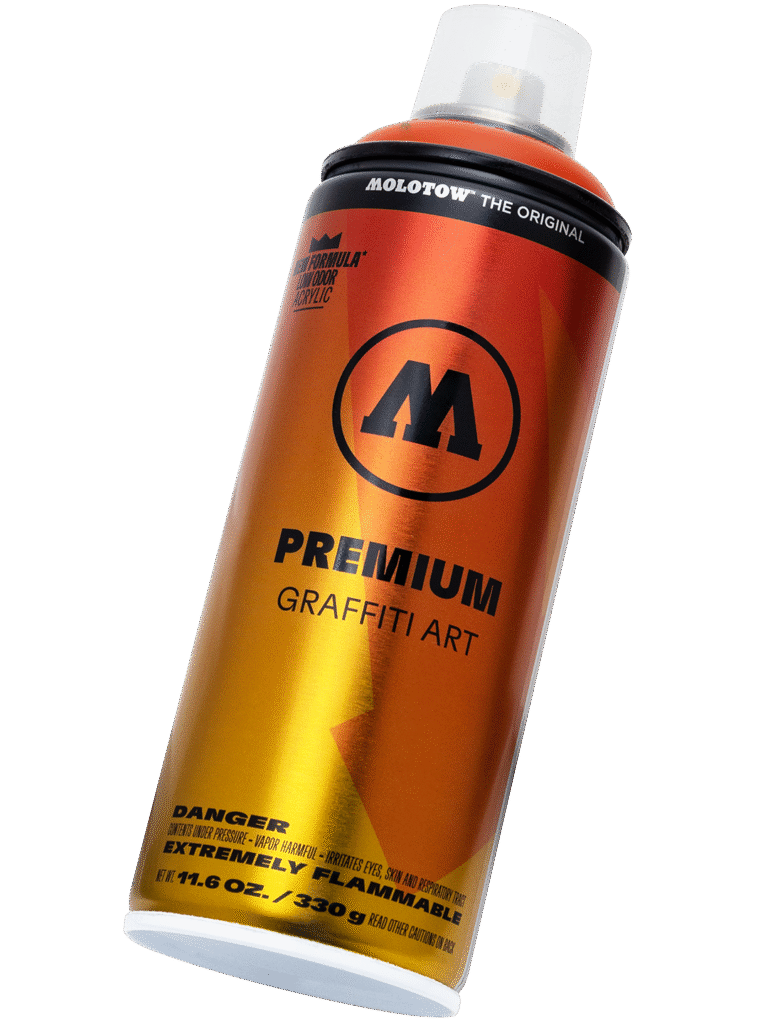 MOLOTOW PREMIUM byl celosvětově první skutečný graffiti sprej a dodnes je stále známý jako referenční sprej číslo 1. Byl v roce 1999 uvedený na trh jako první optimalizovaný sprej pro streetart s barevnou škálou 79 odstínů – vytvořený s umělci pro umělce. Vybavený osvědčenou technologií MOLOTOW™, může tento sprej fungovat v teplotě až do -10°C. Některá nastavení byla vylepšena do takové míry, že nedochází k prášení a neúmyslnému kapání. PREMIUM je známý také pro svou dobrou UV odolnost (jen tak rychle nevybledne). Jeho receptura do roku 2026 byla na rychleschnoucí přilnavé nitroalkydové bázi, a obsahuje čtyřnásobně drcený kvalitní AutoK pigment (říkáme, že je to téměř kvalita autolaku).